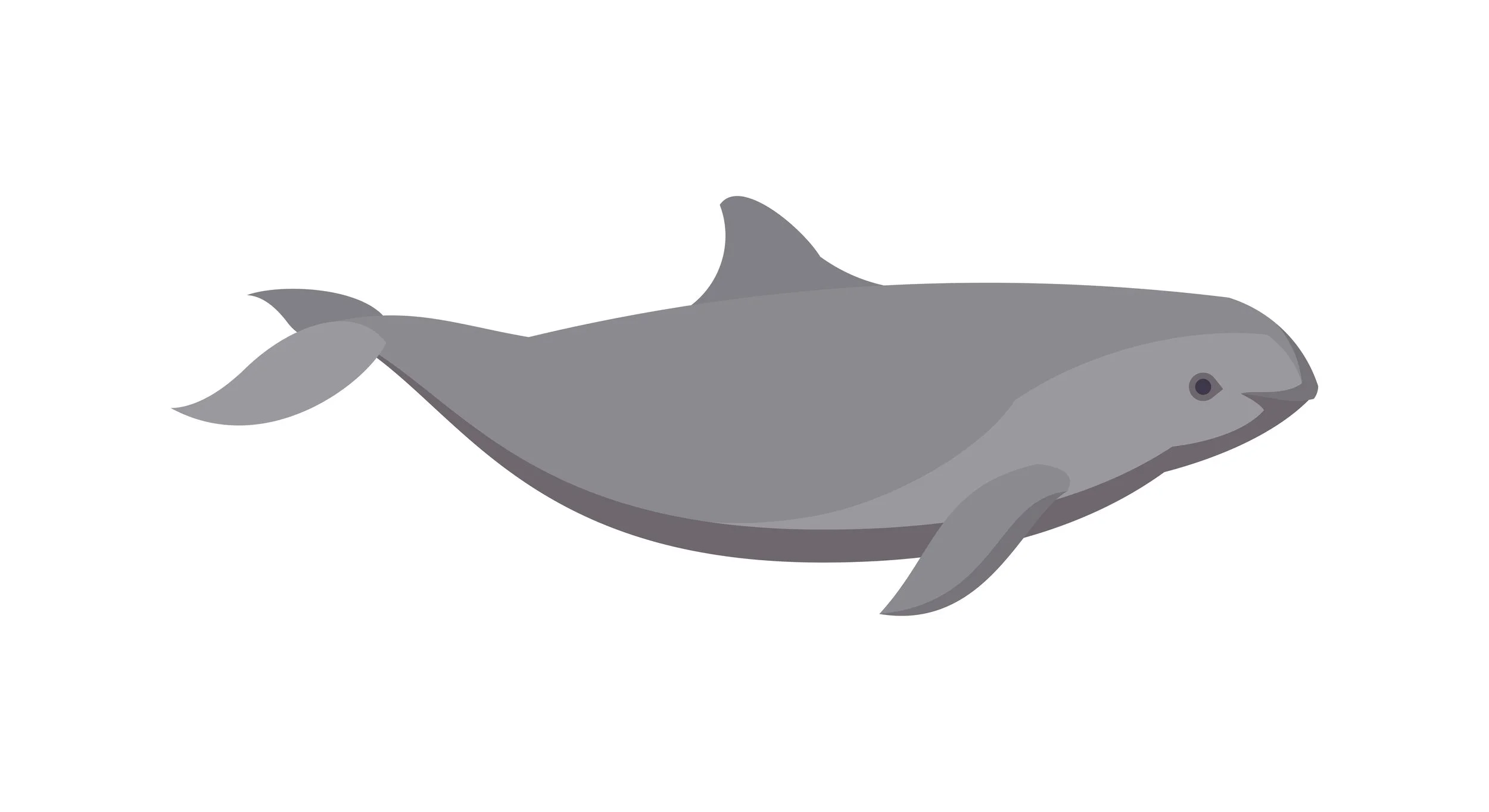Body and Color: Smallest cetacean alone the Jersey Shore and U.S. Atlantic. A sticky body with pointed flippers. No beak. Dark gray in color or black on back with lighter sides and white belly. Dark narrow band between mouth and flipper.