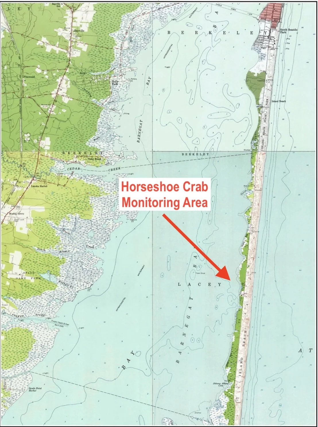 The data collected during these surveys will be submitted to the State of New Jersey, Fish and Wildlife Division. The information will help to fill a gap in horseshoe crab knowledge in New Jersey, as extensive monitoring activities exist in Delaware Bay, New York Harbor, including Sandy Hook Bay and Raritan Bay, and Shark River, but not in Barnegat Bay.