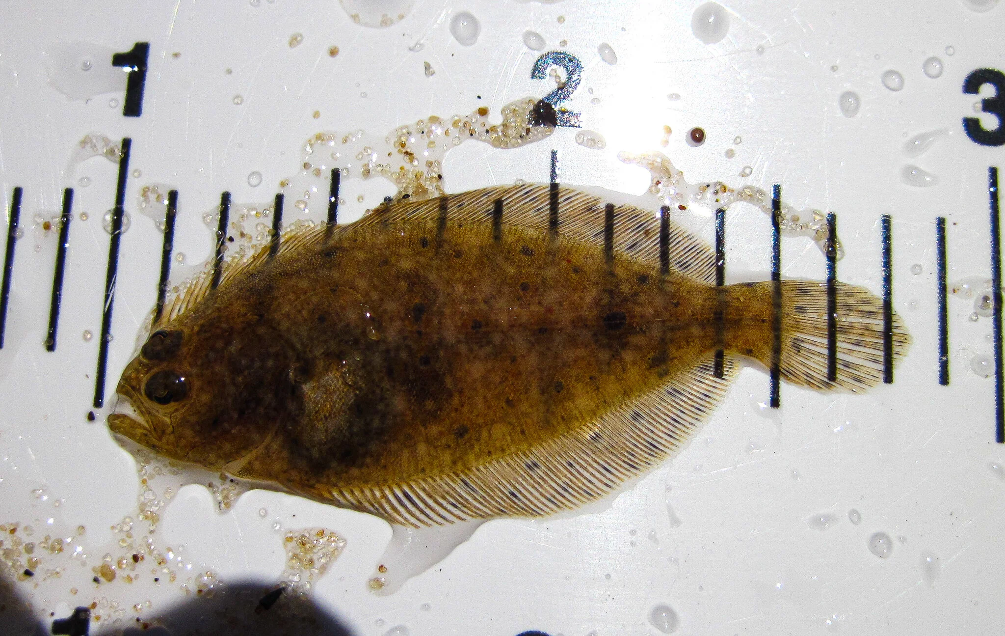 A juvenile summer flounder or fluke flatfish (Paralichthys dentatus).